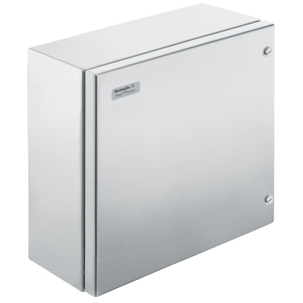 Weidmüller KEBIHS303015S2N1 AL is a Metal housing, Width: 300 mm, Height: 300 mm, Depth: 150 mm, untreated, Flange plate: Yes, Bottom, Stainless steel 1.4301 (304). Metal housing for use in industrial applications. The fixing holes are located outside the sealed area. Wall mounting can be achieved using mounting holes or mounting feet.