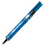 When the release button on the side of the tool is pressed, the piston is moved back suddenly by the spring, creating a vacuum at the nozzle. Operating the tool in this manner and holding the nozzle in close proximity to the molten solder on a heated joint, sucks the liquid solder inside the pump body.