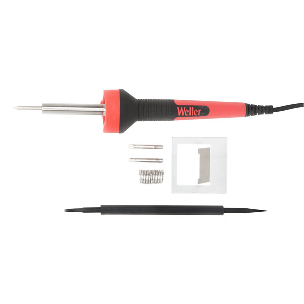 The iron is supplied as part of a kit including a soldering aid tool, alternative soldering tips and a supply of lead-free solder.