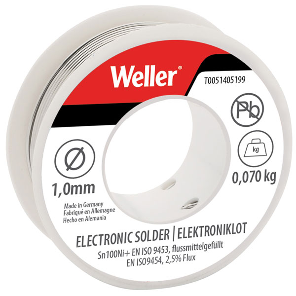 Weller T0051405199 Electronic Lead-Free Solder Sn100Ni100+, 1mm 70g
