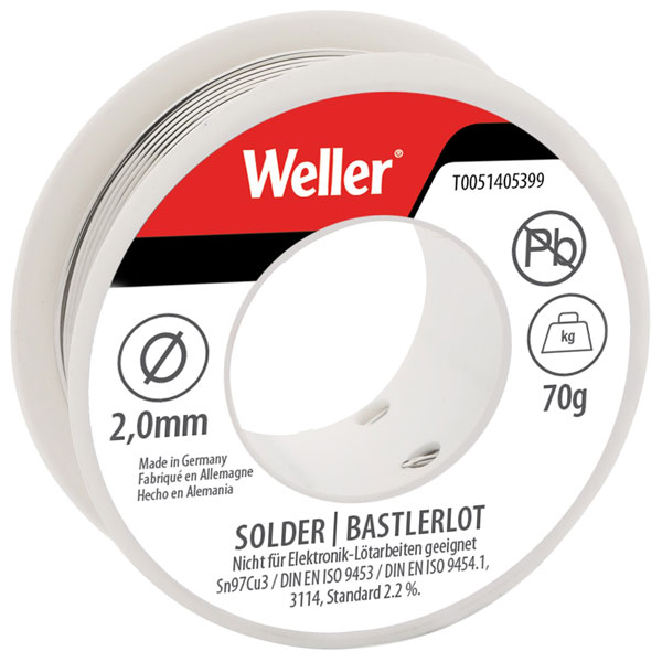 Weller T0051405399 Electronic Lead-Free Solder Sn97Cu3, 2mm 70g