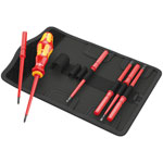A 7-piece set including 6 interchangeable VDE blades and a corresponding VDE handle from Wera's Kraftform Kompakt handle / interchangeable blade system. The system allows rapid exchange of the blades without any special tools.
