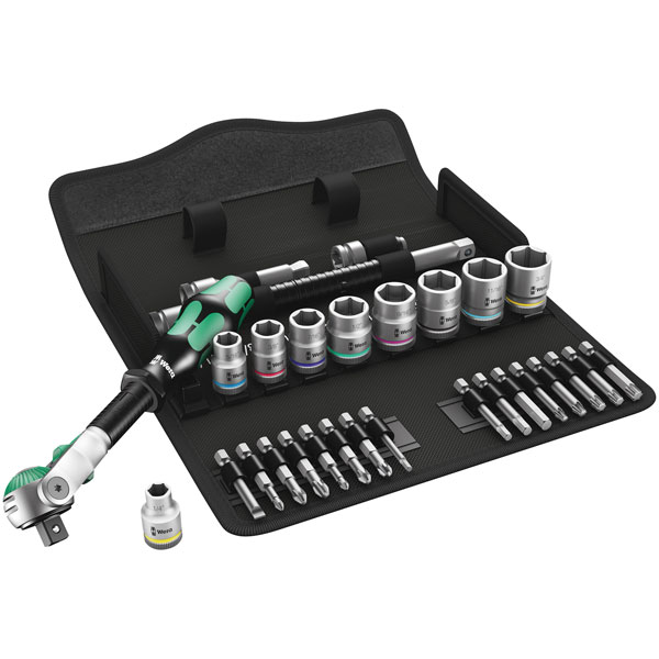 The 8100 SB 9 Zyklop speed ratchet set from Wera is an incredibly compact 29-piece 3/8in. drive imperial set cleverly arranged to occupy a minimum of space.