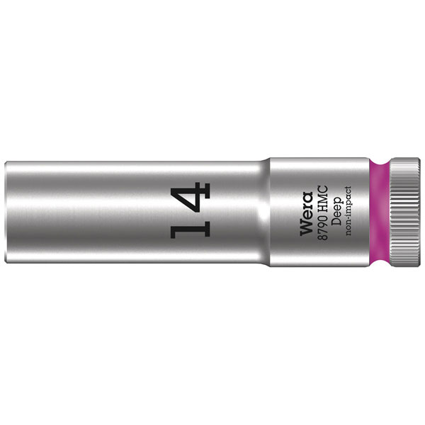 The Wera 8790 HMC Deep 1/2" socket 14 x 83mm is a long 1/2" hand and machine socket (ISO 2725 part 3) with ball intercept ring; for external hexagonal bolts and sockets.