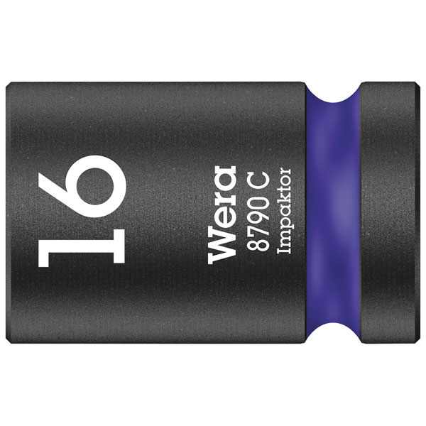 The Wera 8790 C Impaktor Socket with 1/2" Drive 16 x 38 mm is an impact socket designed for use with 1/2" drive (12.5mm) electric or pneumatic impact wrenches.