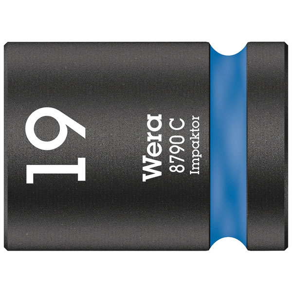 The Wera 8790 C Impaktor Socket with 1/2" Drive 19 x 38 mm is an impact socket designed for use with 1/2" drive (12.5mm) electric or pneumatic impact wrenches.