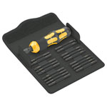 Wera 05018110001 Kraftform Kompakt 900 Set 1, 19 pc - The impact screwdriver 921 combines the advantages of manual impact wrenches, compact tools and screwdrivers with pound-thru blade. The impact wrench function offers a loosening moment of up to 25 Nm. The robust bit holder allows the mounting of different specialised bits for various screw profiles. The pound-thru blade ensures complete power transmission (zero loss). The impact wrench function and screwdriver function can be switched as required.