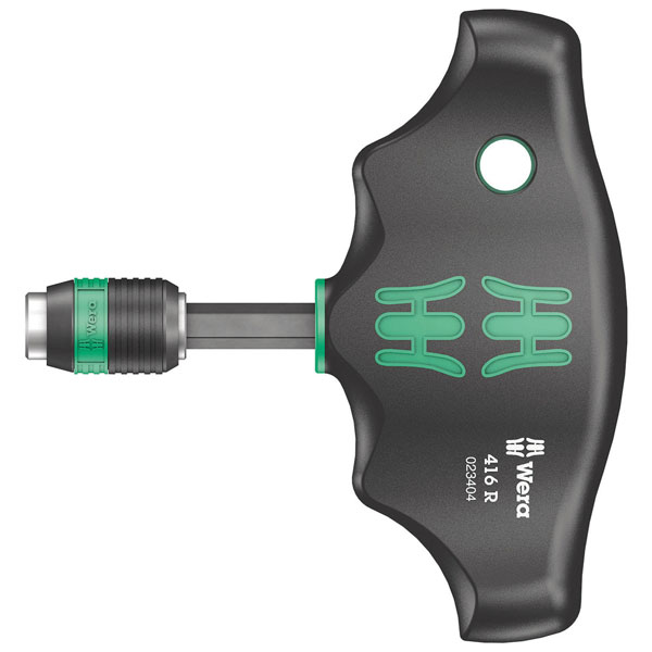 Wera 05023404001 416 R T-handle bitholding Screwdriver Rapidaptor, 1/4" x 45mm - The ideal handle shape to allow high torque transmission in difficult tightening and loosening situations. The ergonomic shape of the handle fills the palm of the hand well, the fingers lie safely in the soft rounded handle recesses.