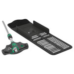 Wera 05023471001 Kraftform Kompakt 400 RA Set 1, 17 pc - One 416 RA T-handle bitholding screwdriver with ratchet function and Rapidaptor quick-release chuck for ¼" bits. The integrated ratchet with fine toothing (80 teeth/return angle 4.5°) eases and accelerates screwdriving without having to reposition the tool.