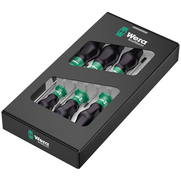 This set from Wera includes 6 Kraftform Comfort screwdrivers with slotted and Pozidriv blades.
