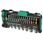 Fine toothing mechanism (60 teeth) for a small return angle of 6° for precise working. Easy clockwise/counterclockwise switching. Ergonomically shaped ratchet head and lever. 1/4" sockets can also be used with the Wera 870/1 adapter (1/4" external hexagon to 1/4" external square head) included in the set. 7 Zyklop sockets (1/4") for manual and machine-operated tools; with ball stop groove. Knurling at the rear end for manageability during manual screwdriving. With Take it easy tool finder: colour coding by size - for quick and easy identification of the required tool.