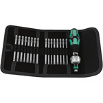 Set includes Wera 816 RA Kraftform magnetic bitholder and the following bits: Slotted 5.5mm; Philips PH 1, PH 2, PH 3, PZ1, PZ2, PZ3, Hex-Plus 3, 4, 5 and 6mm; Torx BO TX10, TX15, TX20, TX25 and TX30.