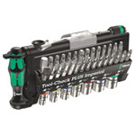 28 bits, 1 hand holder 813 suitable for the attachment of bits with 1/4" hexagon drive as per DIN ISO 1173-C 6.3 and Wera connection series 1, 1 Rapidaptor bit holder, 1 adaptor 870/1 (1/4" hexagon to 1/4" square), 7 sockets (1/4"); 1 Wera Bit Ratchet Zyklop Mini 1, drop-forged full steel design suitable for the attachment of bits witth 1/4" hexagon drive as per DIN ISO 1173-C 6.3 and E 6.3 and Wera connection series 1 and 4; the use of 1/4" sockets is also possible with the application of the Wera adaptor 870/1