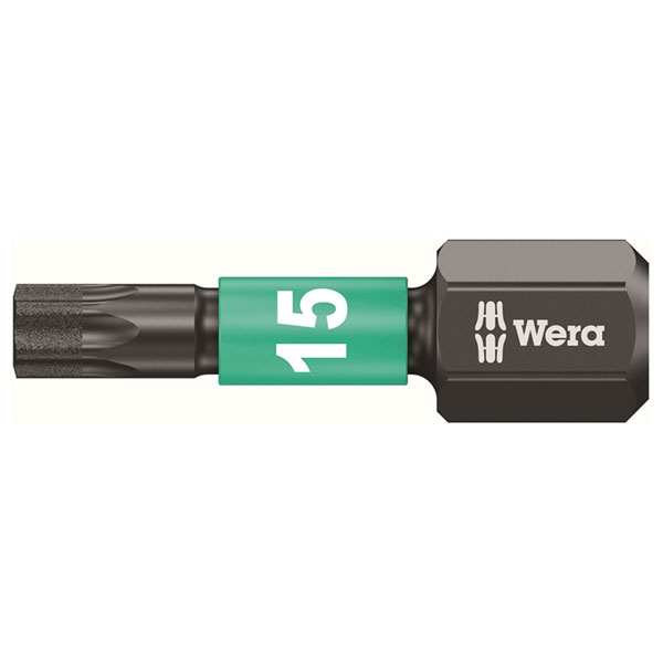 Wera Impaktor 967/1 TORX bits 25mm long with 1/4in hexagon drive , suitable for DIN 3126-F 6.3, ISO 1173 bit holders.