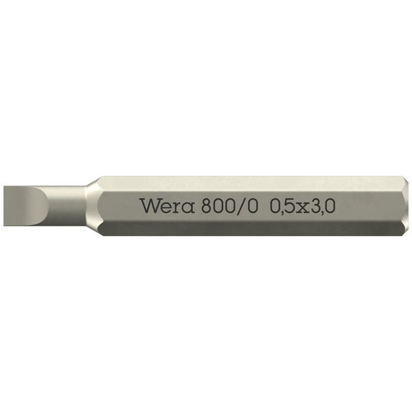 Wera 05058105001 800/0 Micro Bits Slotted Screws 0.50 x 3 x 30mm 4mm Hex Drive