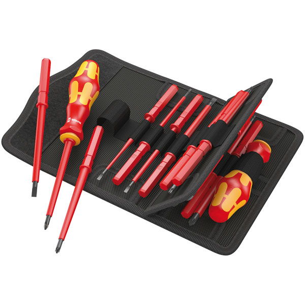 This 17-piece set from Wera includes a range of interchangeable VDE blades suitable for use while working on live wiring.