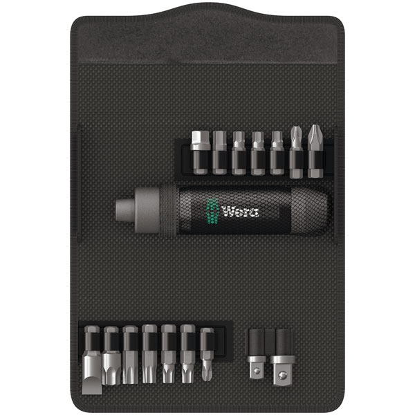 This impact driver set allows you to loosen or tighten screws simply by the force of an impact from a hammer or mallet, without needing to use power or air tools. The impact force of the hammer is converted into rotary motion. The Wera impact driver has a particularly high efficiency thanks to its robust, double-curved design.