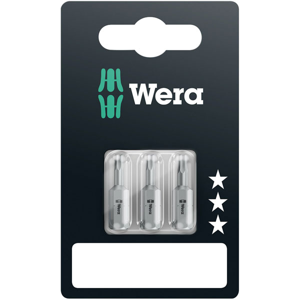 These 1/4in hexagon drive bits from Wera are designed for tough applications and are suitable for use with Hex-Plus screws. Supplied in pack of 3 different sizes - SW2, SW2.5 and SW3.