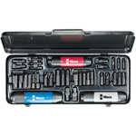 This comprehensive set from Wera includes 3 impact drivers, 3 adaptors, plus 30 slotted, Phillips and hexagon bits, supplied in a strong steel case.