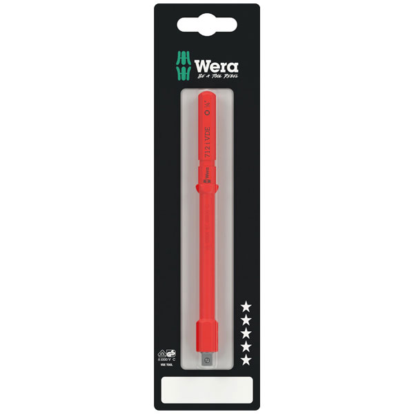 It is suitable for insulated Wera 1/4" sockets and 1/4" bit sockets. Safe working at voltages up to 1,000 V is guaranteed as all tools are individually tested at 10,000 V as per IEC 60900.