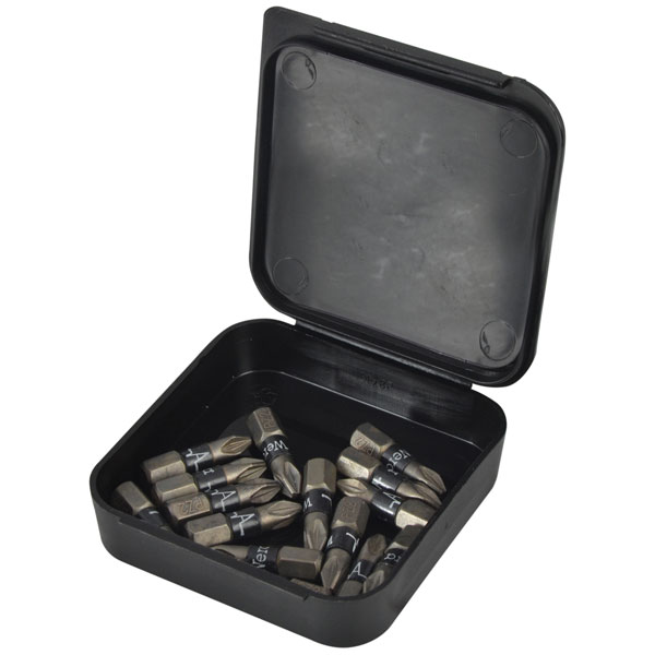 Impaktor Pozidriv bits 25mm long with 1/4 in hexagon drive.