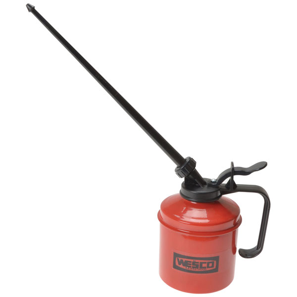 Wesco oil can with strong, deep drawn metal body. The flexible nylon spout enables access to difficult to reach areas.