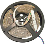 A reel of 300 green LEDs mounted on 5m of flexible self-adhesive LED lighting tape. The 5m length may be, using scissors, quickly and easily divided into separate lengths down to 100mm (containing 6x LEDs), this gives up to 50x separate segments to be able to create custom lighting projects.