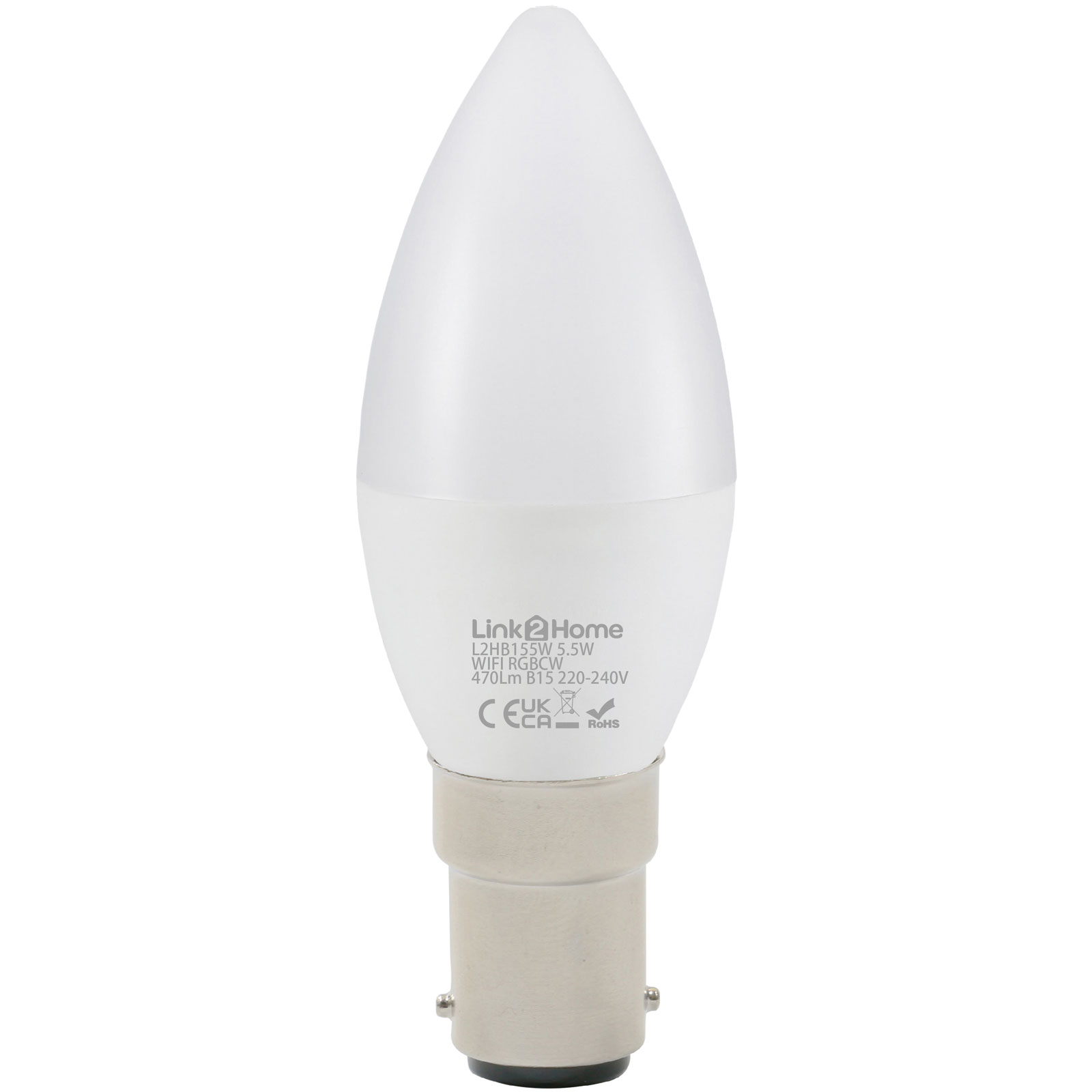 Link2Home L2HB225W Wi-Fi LED BC B22 Opal Candle Dim Bulb White RGB 470 lm 5.5W