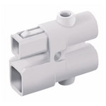 This white 2-pole compact mini-connector 48V/25A from Wieland is fitted with a screw connection and integrated locking device. Manufactured with polyamide housing material, CuZn contact material (silver-plated surface finish) and IP20 protection.