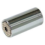 Drive: DIN 3120, shape C 10. Replaces nuts in the range of 7 mm to 19 mm. No matter whether inch or metric dimensions. The 54 steel pins adapts to every nut or of the screw with external profile. For screws up to 8 mm high. Extra: The Gripper also fits on exotic screws such as hooks or eyelet screws allows a torque transmission of up to 80 Nm. Material: Housing made of alloy steel. 54-hardened steel pins.