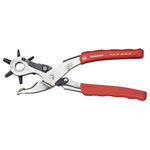 Head shape: Size designation of perforating tubes in viewing window. Design: Locking mechanism and 6 exchangeable punching tools, diameter: 2.0 / 2.5 / 3.0 / 3.5 / 4.0 / 4.5 mm. With opening spring and locking mechanism for real single-handed operation. Material: Body of pliers made of high-resistance special steel, nickel-plated. Application: Perforation of a wide variety of different materials in trade, industry and DIY.