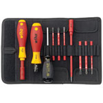 This handy set of holders and mixed slimBits from Wiha gives you all the equipment you need for controlled fastening on live parts up to 1000V AC in a high quality, rugged and easily portable case. All bits have protective insulation moulded directly onto them.