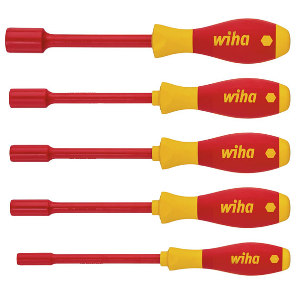 The Wiha SoftFinish® electric Hex Nut Drivers come with a high quality Chrome vanadium steel blade, through hardened with a black-finish. Insulation is moulded directly onto the blade. Individually tested at 10,000 V AC and approved for 1,000 V AC.