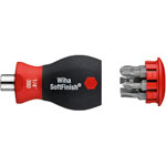A Wiha SoftFinish Stubby Screwdriver Bit Holder with a choice of 6x standard ¼in. hex bits contained inside the handle.