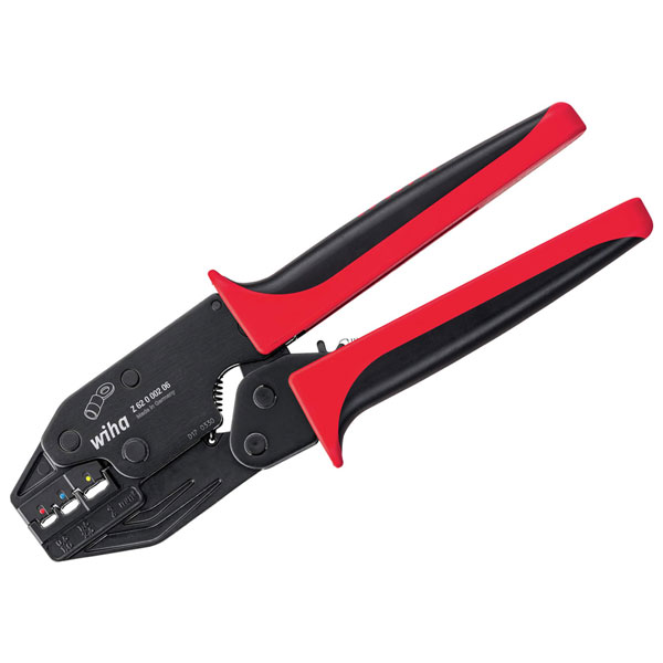 The Wiha Crimping Tool is for processing pin-shaped cable eyes with insulating sleeve according to DIN 46231, ring-shaped cable eyes with insulating sleeve according to DIN 46237 and pin bushing with insulating sleeve according to DIN 46245 Part 1-3.