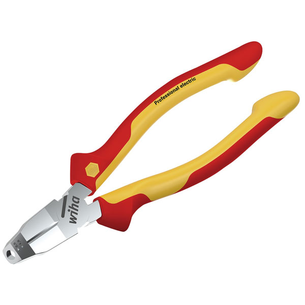 The Wiha Professional electric Installation TriCut Pliers do the work of three tools: diagonal cutters, skinning pliers and stripping pliers. Suitable for cutting soft and hard wires and cables, such as NYM lines. Also ideal for flush stripping of round and moisture-proof cable and skinning of conductors, even in hard-to-reach spots, such as those inside junction and distribution boxes.