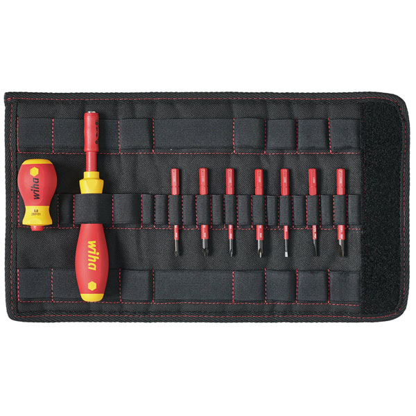 The Wiha SoftFinish® electric slimVario Interchangeable Screwdriver Set covers multiple applications in one compact case, reducing the need for carrying multiple large screwdrivers. Ideal for electricians who are often faced with different screw profiles when working on live parts during their daily work.