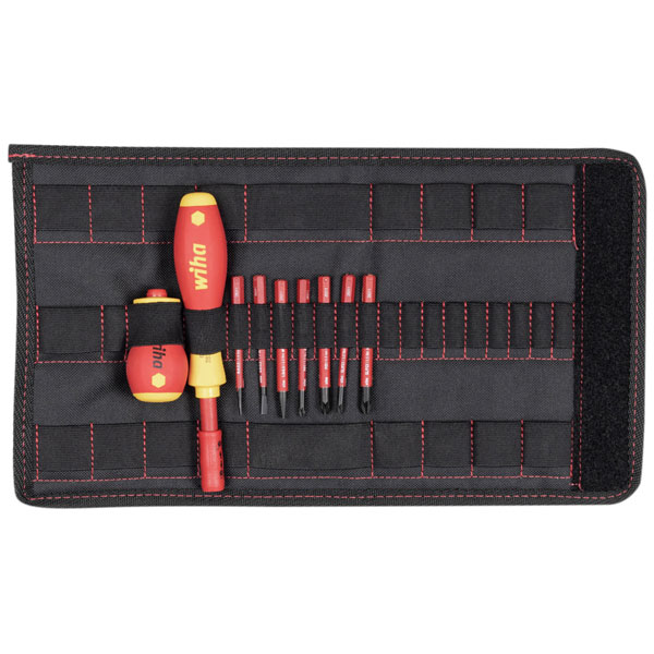 The Wiha SoftFinish® electric slimVario Interchangeable Screwdriver Set covers multiple applications in one compact case, reducing the need for carrying multiple large screwdrivers. Ideal for electricians who are often faced with different screw profiles when working on live parts during their daily work.