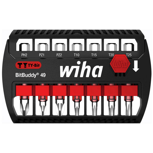 The Wiha BitBuddy® TY Bit Set 7 Piece allows you to position bits directly in the machine and return them to the holder easily. The pioneering arrangement of bits in the holder and the lasered profile size on the bit base ensure it is extremely simple to select the right size when removing the bit from the holder.