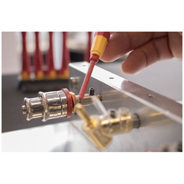 The challenge with precision-mechanical screw joints is to work precisely and sensitively without damaging the workpiece. Due to their long, slim handles and quick-turn zone, the fine screwdriver PicoFinish® from Wiha are ideal for fine and delicate work in the electrical and precision mechanics sector, as well as in the hobby and model making sector. The ergonomic grip design with soft zone enables comfortable working. Sensitive and fast turning is supported with the smooth rotating cap. Furthermore, the imprinted screwdriver symbols on the rotating cap make it easier to select the correct screwdriver profile. The insulated fine screwdrivers are subjected to routine testing in accordance with the international standard IEC 60900 and enable safe working in the range of live parts up to 1,000 V AC. Application: Ideal for fine and filigree screwing work in the electrical system and on live parts.