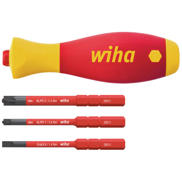 Both the insulated screwdriver handle and slimBits undergo an individual piece test as per the international IEC 60900 standard, allowing users to work safely on live parts up to 1,000 V AC.