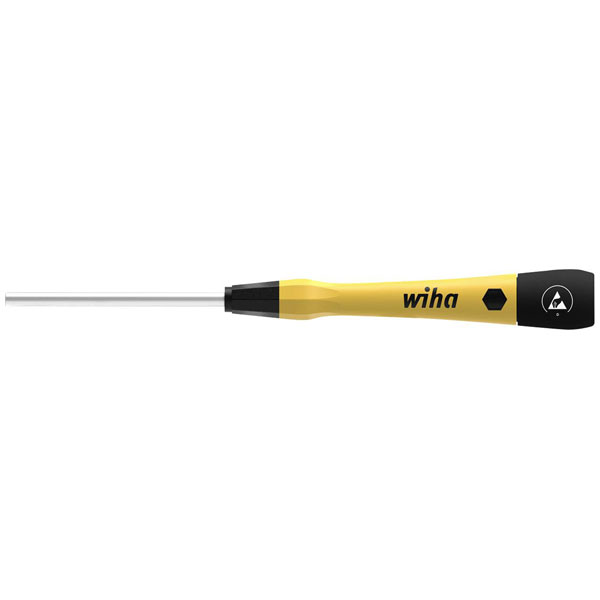 The challenge when working on electronic components is that they can be damaged even at the lowest voltages. This task can be mastered without any problem with the antistatic fine-screw drivers PicoFinish® ESD. Thanks to their long, slim handles and the quick-turn zone, the fine screwdrivers are ideal for precise and sensitive work on delicate workpieces. The ergonomic grip design with soft zone enables comfortable working. Sensitive and fast turning is supported with the smooth rotating cap. Furthermore, the imprinted screwdriver symbols on the rotating cap make it easier to select the correct screwdriver profile. The dissipative tool conducts electrostatic energy in a controlled and safe manner. The ESD fine screwdrivers are manufactured according to the international standard IEC 61340-5-1 and thus guarantee maximum protection of the electronic components. The screwdrivers have a surface resistance of 106 - 109 ohms.
