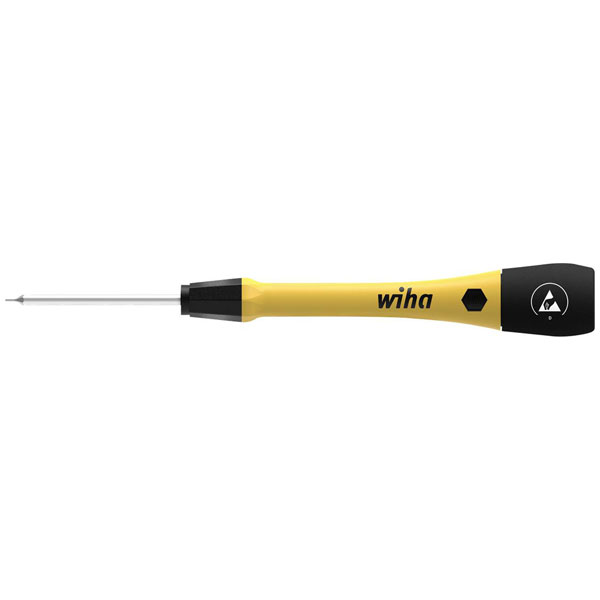The challenge when working on electronic components is that they can be damaged even at the lowest voltages. This task can be mastered without any problem with the antistatic fine-screw drivers PicoFinish® ESD. Thanks to their long, slim handles and the quick-turn zone, the fine screwdrivers are ideal for precise and sensitive work on delicate workpieces. The ergonomic grip design with soft zone enables comfortable working. Sensitive and fast turning is supported with the smooth rotating cap. Furthermore, the imprinted screwdriver symbols on the rotating cap make it easier to select the correct screwdriver profile. The dissipative tool conducts electrostatic energy in a controlled and safe manner. The ESD fine screwdrivers are manufactured according to the international standard IEC 61340-5-1 and thus guarantee maximum protection of the electronic components. The screwdrivers have a surface resistance of 106 - 109 ohms.