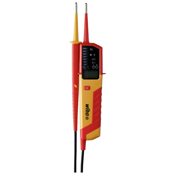 The Wiha eMobility Voltage and Continuity Tester ensures electrical isolation. It is suitable for voltage testing, flow testing and rotational field testing. Also suitable for testing hybrid and electric vehicles as well as photovoltaic systems.