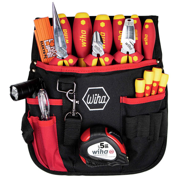 The 18 Piece Wiha electrician Tool Set provides and keeps all tools required for electrical applications within reach for constant access. At the same time, users have both hands free for working.