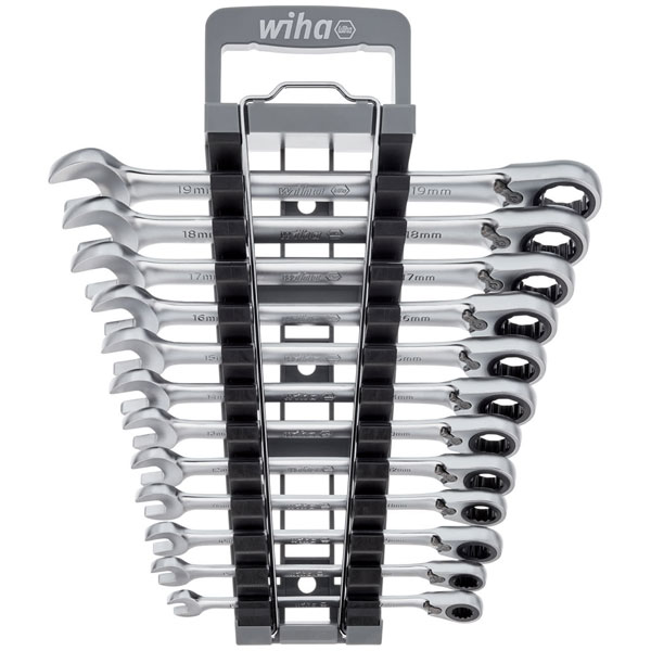 This Wiha Ring Ratchet Spanners Set, 12 Piece, are made from high-quality, chrome vanadium steel with a corrosion-resistant and easy-to-clean surface. The design enables high leverage without force, making it easy to open any screw connection.
