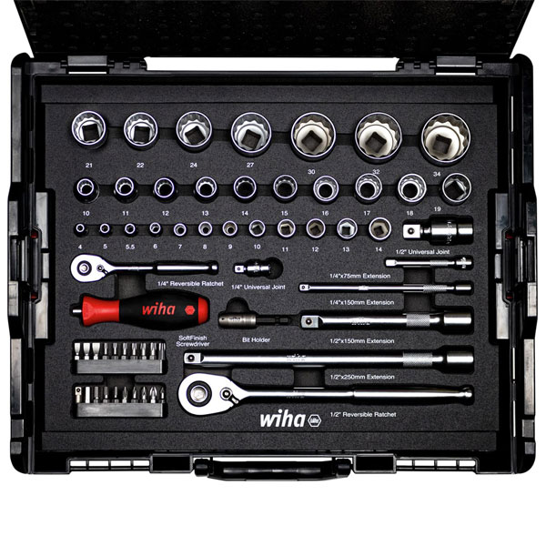The Wiha Nut Driver & Bit Set, 60 Piece, can be used for installation and mounting work. All of the nut driver inserts are made from high quality chrome vanadium steel with a corrosion-resistant, easy to clean surface.