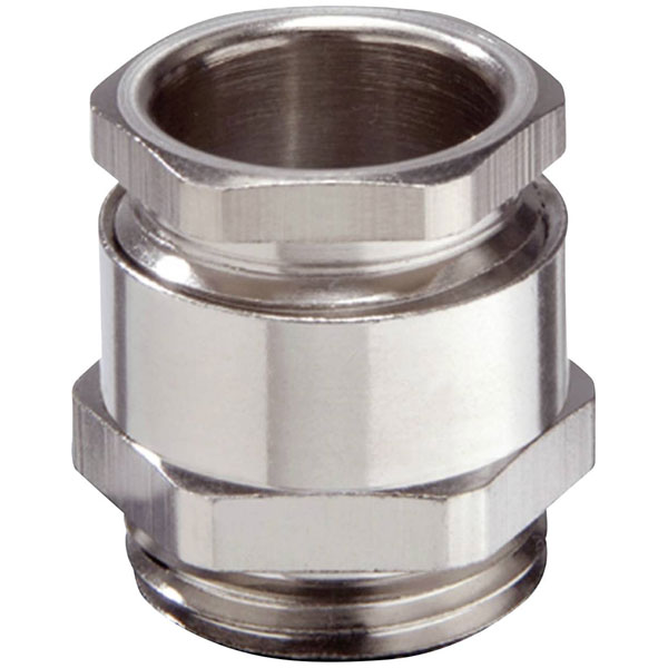 Brass cable gland with 6kt. In-line connector and cut-out sealing ring.