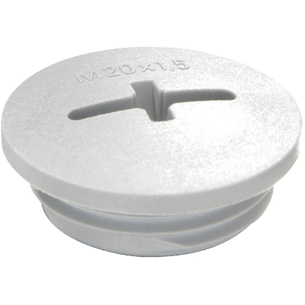 This light grey flame-retardant plastic M40 blind plug from the Wiska EVSF series is designed for use with cable glands.