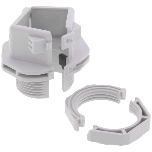 Divisible cable gland incl. matching counter nut for easy installation of pre-assembled cables.
